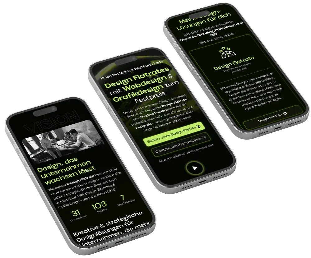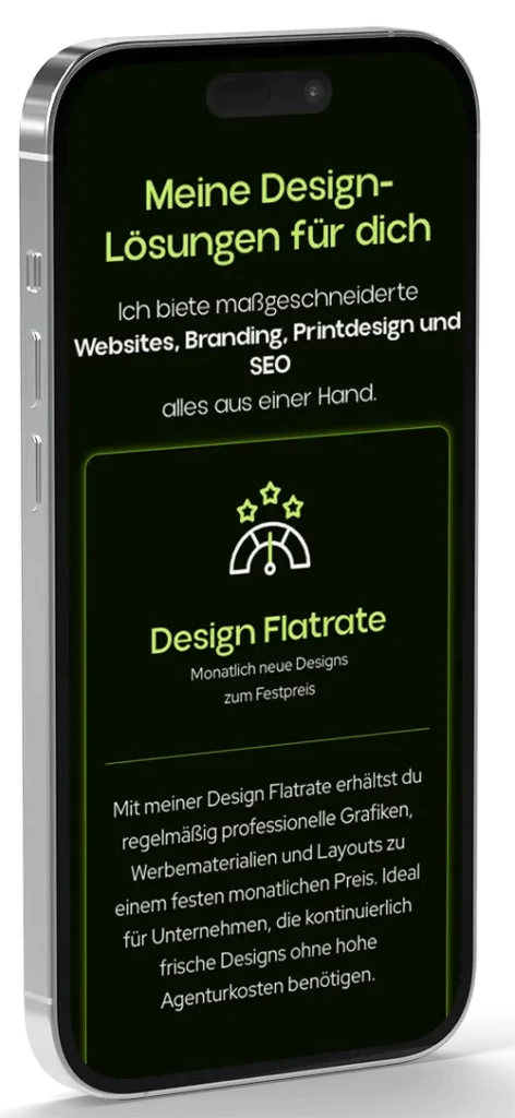 Da auch ich nur gewisse Kapazitäten zur Verfügung habe, sichere dir einen der begrenzten Plätze der Design Flatrate – ohne Stress, ohne Kleingedrucktes.